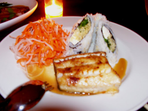 Entree II: Japanese Black Cod with a miso glaze and cream cheese and arugula sushi rolls ($24)