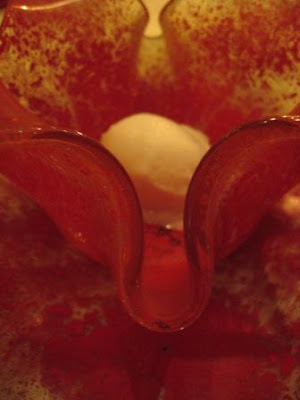 The coconut sorbet was a refreshing change after eating so many rich foods. The coconut flavor leaned toward processed rather than fresh, but in a good way; fresh coconut probably would have been too delicate. The pear sorbet was far sweeter than the coconut and the Astronomer surprisingly liked the coconut more. I think the pear sorbet was made of canned or preserved pears due to its texture and syrupiness. Our sorbets were served in funky blooming bowls that made eating the melted sorbet impossible.