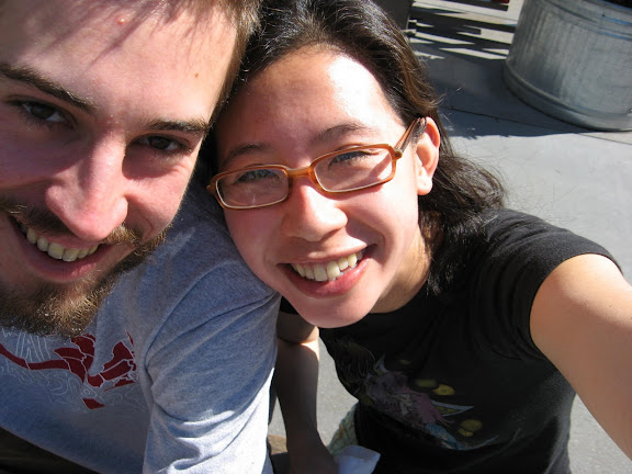 The Astronomer: My search for desert took me to the Miette Patisserie, where the chocolate madeleine ($0.75) looked irresistible. I also ordered a miniature creme fraiche scone ($0.50). We ate our desserts outside in the sun–the madeleine was delicious, much like a slice of my favorite chocolate poundcake, and the scone also hit the spot. What could be better than chocolate with cream? Perhaps chocolate with cream and fruit.