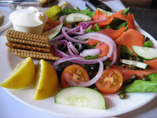 Josh and I shared an uninteresting smoked salmon appetizer. The salmon was respectable, but the accoutrements (caper, onions, sour cream, etc.) didn’t pique my interest. Ever since feasting on Perrier’s incredible house-smoked salmon last winter, I’ve been obsessed with the stuff and order it whenever available. But after this unfortunate experience I will hold out for Perrier’s smoked salmon because the lesser versions are really quite sad.