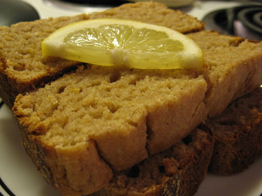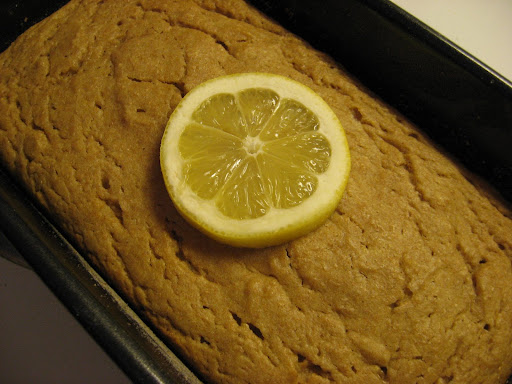 Substitutions: I halved the entire recipe to yield one loaf and skipped the poppy seeds and glaze completely. I used 100% whole wheat flour, plain yogurt in place of butter and milk, a heaping teaspoon of baking soda, 1/4 C of lemon juice in the batter, and half the sugar called for. These changes were suggested by individuals who tried the recipe on Epicurious. The bread had fabulous texture and was very lemony!