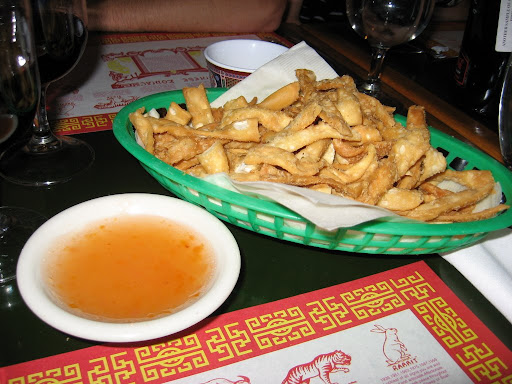 When we had finished being rudely booted from our chosen birthday dinner destination, we were left with a dilemma. It was doubtful that any of the tasty BYOBs in the vicinity would be able to seat such a large party on a Friday night with no advanced notice, but we had little choice but to wander the streets in search of a restaurant willing to take us in. It was looking increasingly likely that we would end up celebrating at the Fox and Hound. As we passed Rittenhouse Square, someone said off-handedly, “Maybe we should just get Chinese food.” As we have already established, I LOVE Chinese food (see Susanna Foo), so of course the answer was a resounding yes. We ducked into a restaurant called Szechwan Hunan. It was practically empty, and they quickly moved several tables around so that we could all sit together. What fantastic service! I was blown away. They also provided menus, a bottle opener, glasses for both wine and water, and unlimited refills of their delicious wonton chips with duck sauce. It was almost as if they were genuinely grateful for our patronage.