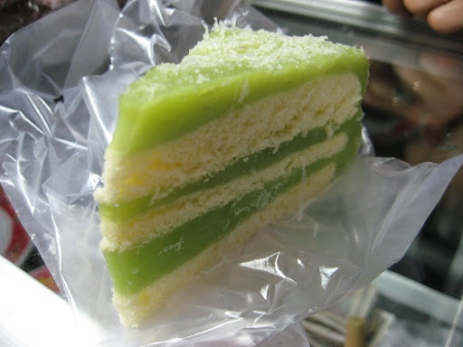 This is another one of Binh Thanh’s meh offerings. The green layers of the cake are made of sticky pandan flavored tapioca that’s similar to banh da lon, while the yellow layers are plain cake. The entire creation is sprinkled with coconut flakes. There was nothing intrinsically terrible about this dessert, it just struck me as dry and not very flavorful. Yawn-city.