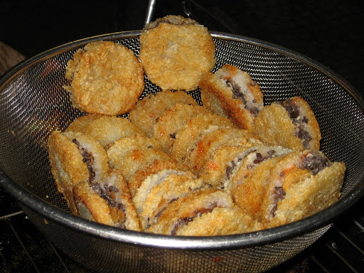 While I love bo bia (fresh spring rolls stuffed with a jicama and carrot slaw, sweet Chinese sausages and scrabled eggs that’s dipped in hoisin sauce), I ain’t got no love for bo bia ngot—a sweet spin on the original comprised of coconut shavings, sugar sticks and sesame seeds. Bo bia ngot is too dry and could really benefit from a sauce. A sweet and salty coconut milk sauce would spruce bo bia ngot up nicely.