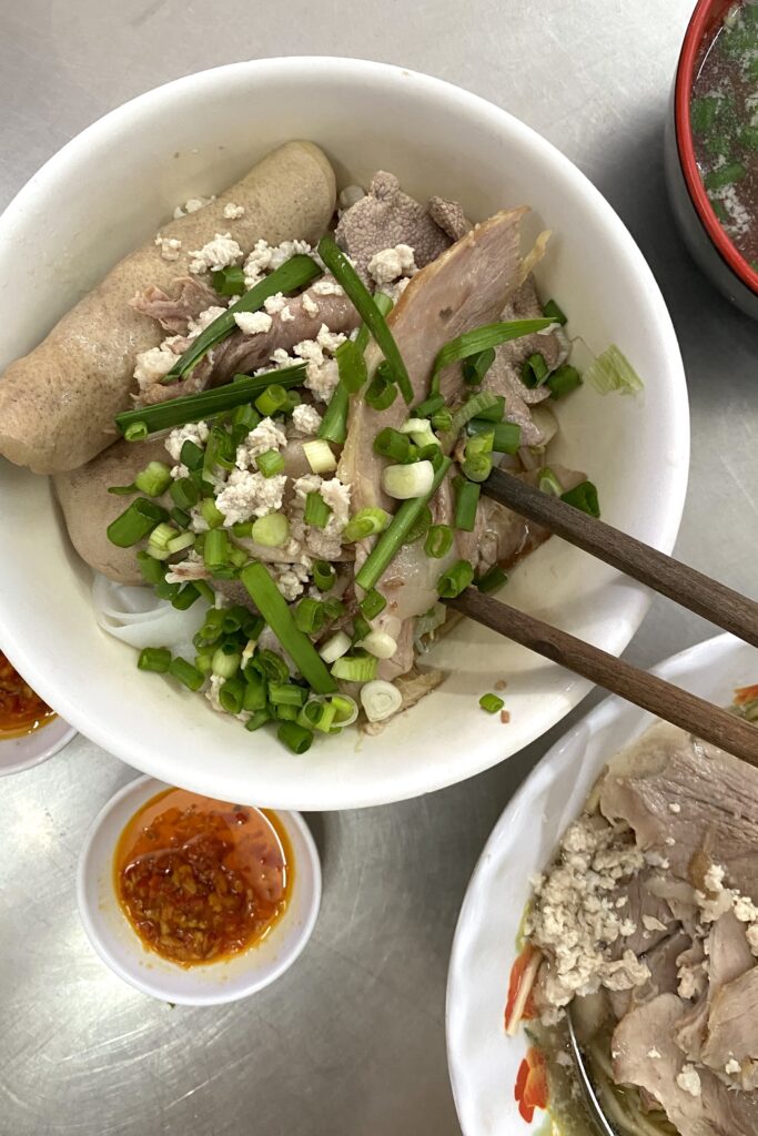 My great uncle Hien, who lives in Washington state but was in Saigon for my cousin’s wedding, introduced me to his favorite hu tieu muc (squid noodles) joint. In addition to everyone ordering their own noodle bowls, he insisted on an additional portion of squid for the table — I like his style. The restaurant’s excellent house-made muối ớt chanh sauce lives rent-free in my mind.