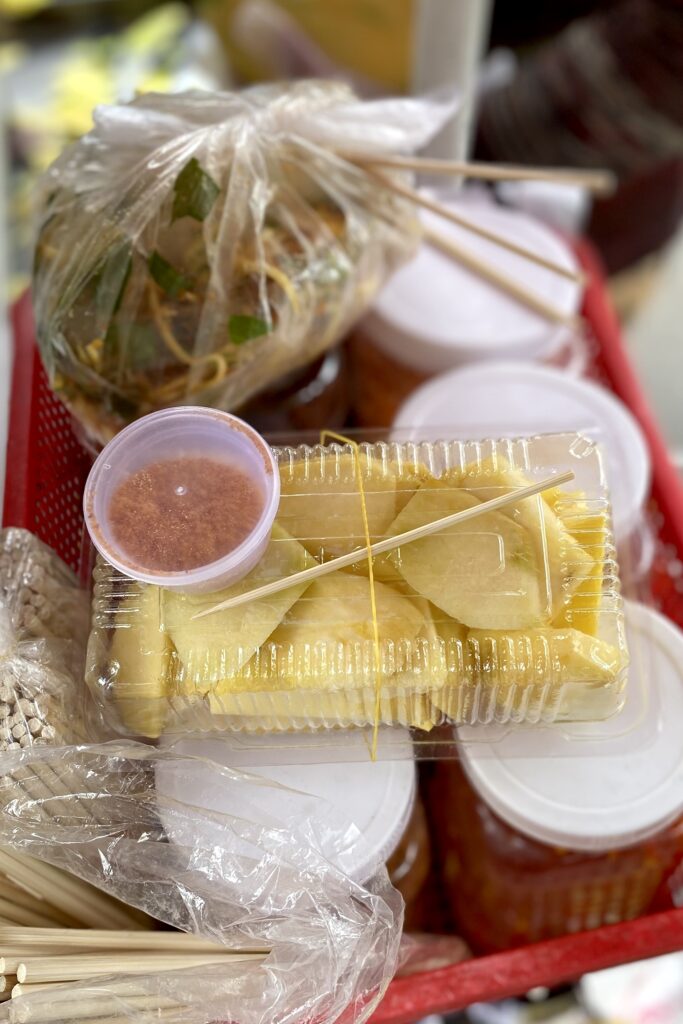 The roving fresh fruit vendor never failed to deliver refreshment. The dipping salt with chilis and fermented shrimp paste paired beautifully with the snappy mangoes and ripe pineapples.